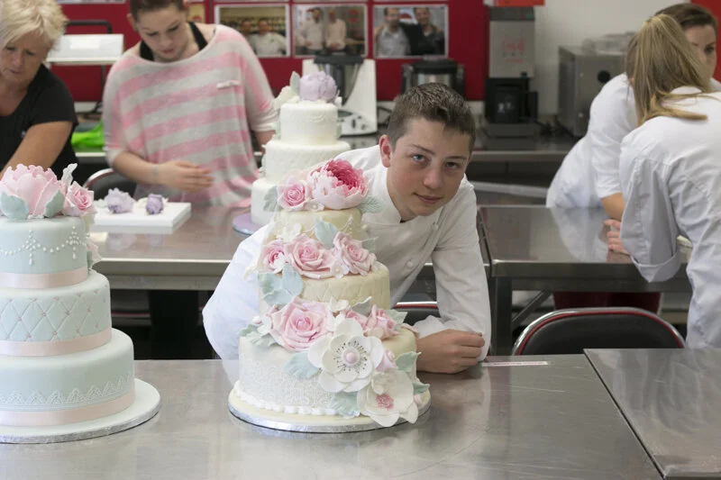 Ich freue mich wirklich, dass ich an diesem Kurs teilnehmen, viele neue Dinge lernen und viele tolle kreative Köpfe kennen lernen durfte. Die Teilnehmer waren übrigens hauptsächlich Konditormeisterinnen, manche gerade erst fertig, manche noch in der Ausbildung und manche schon mit jahrelanger Berufserfahrung. Auch eine Köchin war mit dabei. Am meisten begeistert hat mich aber der jüngste Teilnehmer, Franz, der mit 15 Jahren schon Dinge kann, von denen mancher Konditor träumt. Dieser Junge ist einfach sensationell. Er macht Torten, Pralinen, Figuren aus Schokolade – wirklich faszinierend. Bei ihm spürt man, dass er für seinen angestrebten Beruf lebt. In ihm explodiert pure Leidenschaft für die süße Kunst. Ganz groß. Von ihm werden wir mit Sicherheit noch hören. Weil ich so begeistert von ihm bin, hat er sich auch ein Bild in diesem Beitrag verdient: