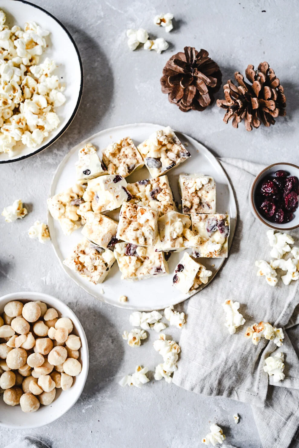 Rocky Road Fudge ist der perfekte Last-Minute-Tipp, wenn ihr keine Zeit habt, Plätzchen zu backen. Ihr benötigt nur Schokolade, etwas Kokosöl und leckere Zutaten, die ihr gerade zuhause habt. Das vermischt ihr einfach alles und fertig ist ein toller Leckerbissen für den Keks-Teller. Ich habe mich für weiße Schokolade entschieden und gleich drei leckere Zutaten von Seeberger mit hineingemischt: Leckeres Karamell-Popcorn für den besonderen Crunch, Cranberries für eine fruchtig-süße Note und die Königin der Nüsse, leckere Macadamias, die mit weißer Schokolade die perfekte Harmonie bilden.